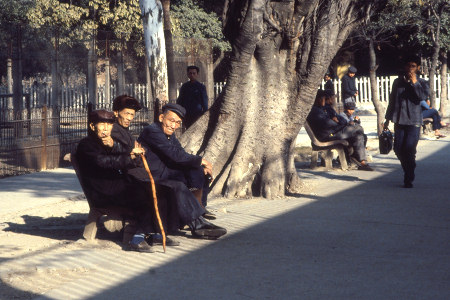 ![]() Old men's activities - sitting, watching, and (below) smoking and betting games |