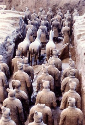 Excavated Qin warriors, horses and chariots at Xian