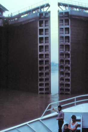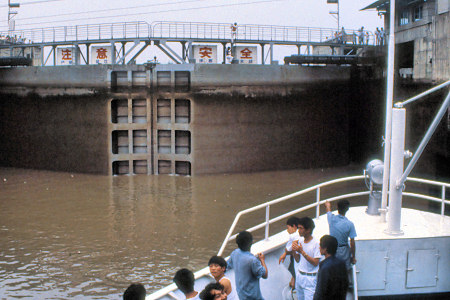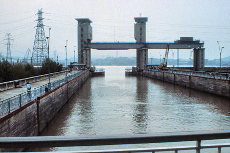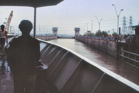![]() Approaching one of the many locks - we are much higher than the water level to come |