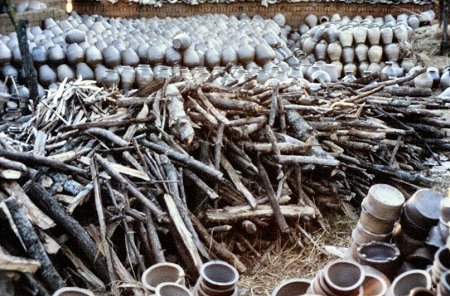 ![]() Collecting the firewood, and the pots ready for firing |