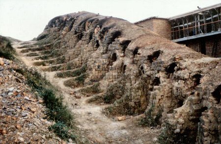![]() An amazing "climbing kiln", which takes advantage of the hot air from the lower kilns exhausting into the higher kilns |