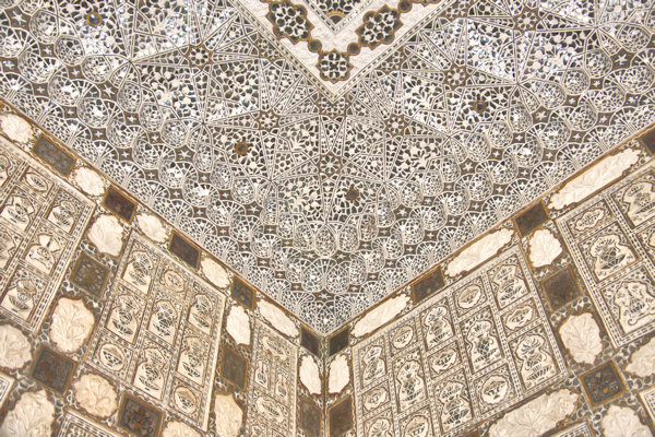 Intricate mirror / marble mosaic decoration in the Sheesh Mahal creating a