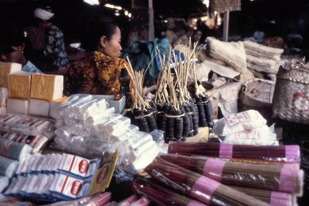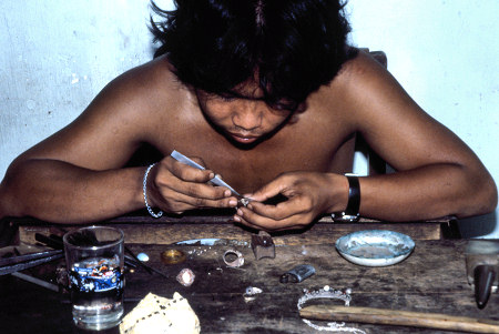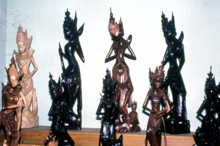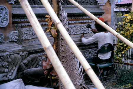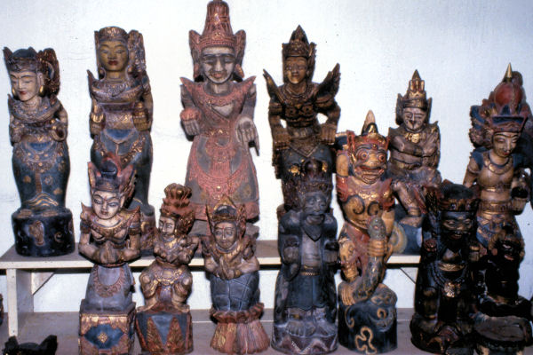 Above: Sculptors; below: some typical Bali sculptures / carvings |