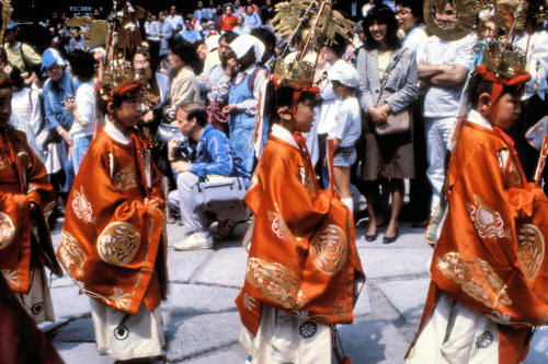 18 May Festival and Procession of 100's of local people dressed in historical costumes and carrying banners and caskets of the enshrined spirits of past famous people The Procession