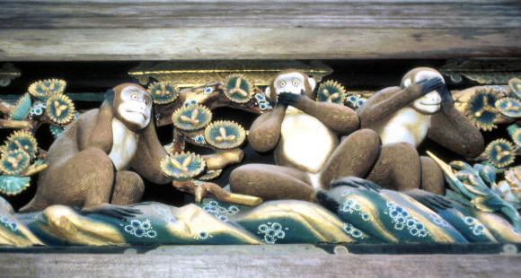![]() The original 'Hear no evil, speak no evil, see no evil' ? - under the eaves of one of the Toshogu buildings |