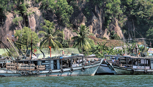 Below: fishing boats and "water village houses"