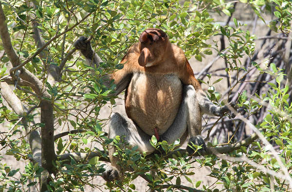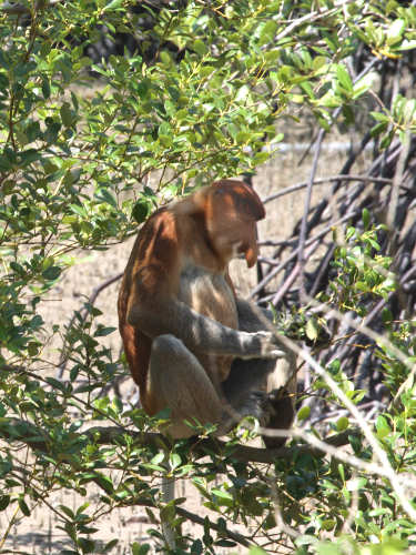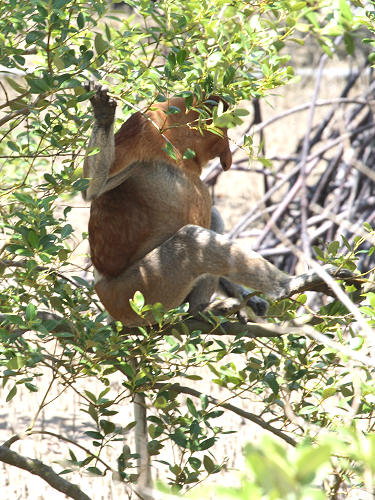 Below: The rare Proboscis Monkeys live in the mangroves |