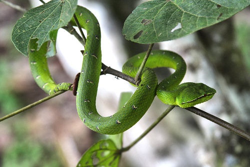 ![]() Above: female Wagler's Pit Viper Below: male Wagler's Pit Viper |