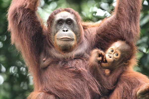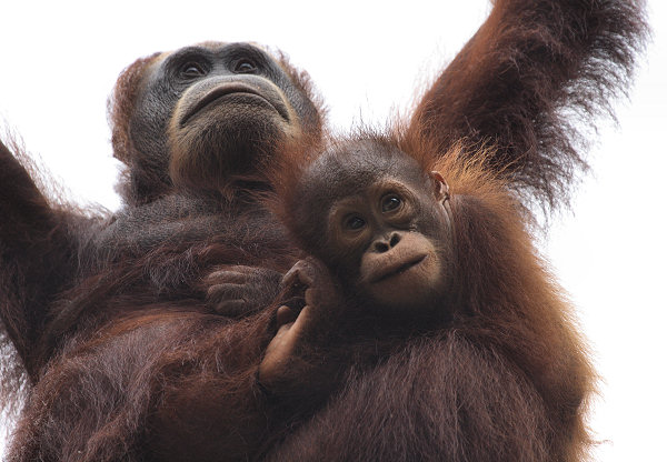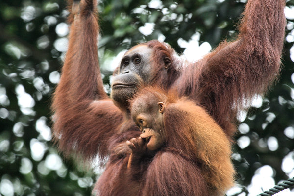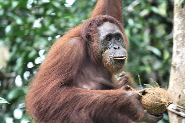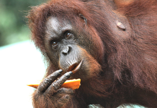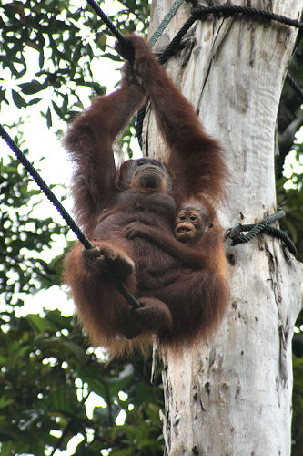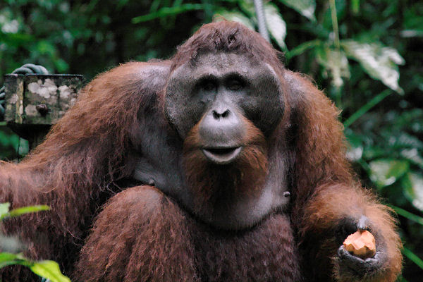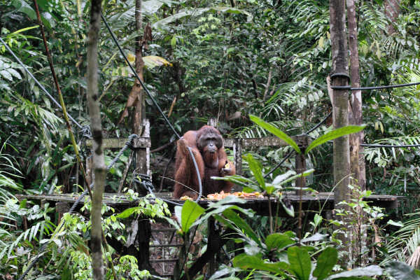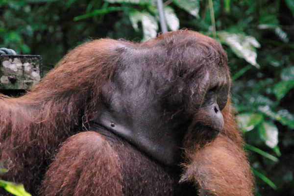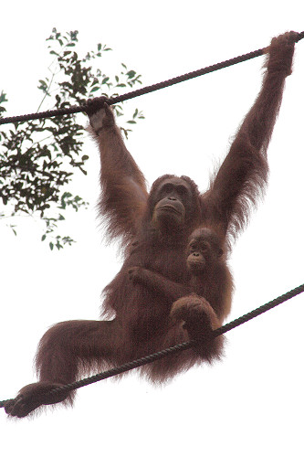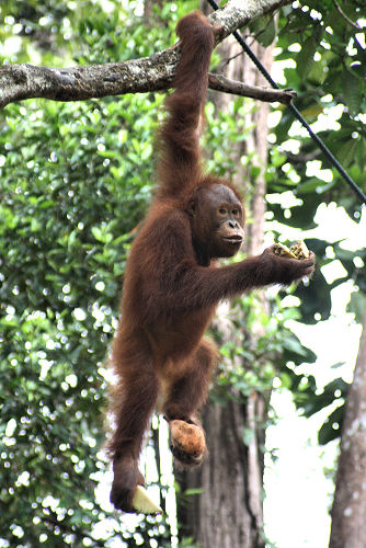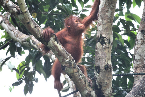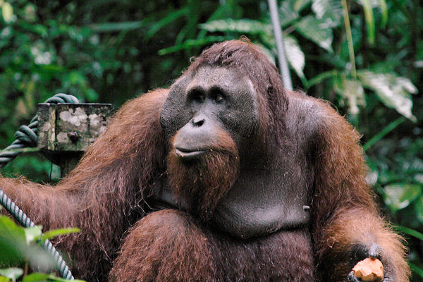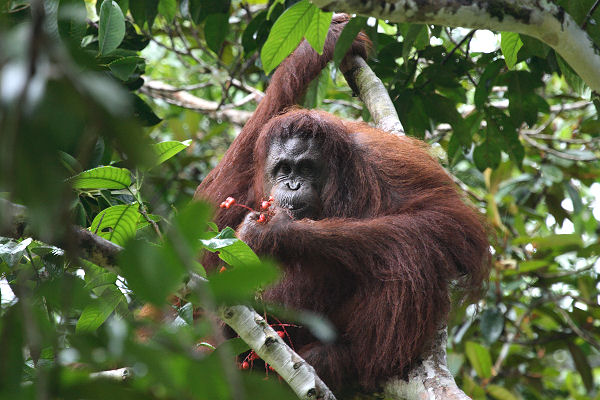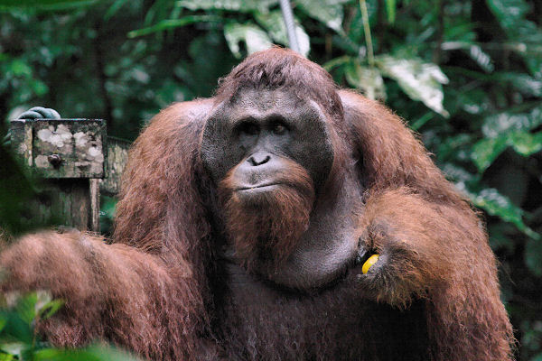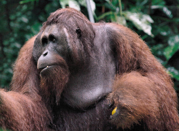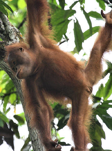 Below: a large lone male - "George" (some distance away in the dark jungle - and it was raining) ![]() |