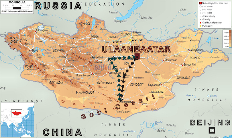 Gobi Tour see route above |