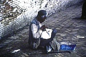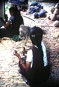 Above right and below: Tibetan refugees in a weaving/sewing workshop |
