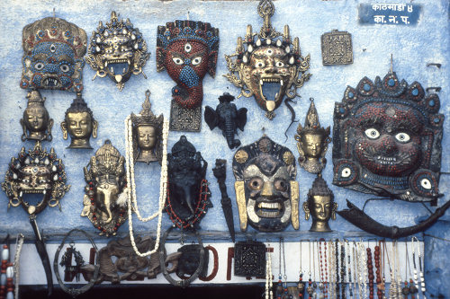 ![]() Artefacts for sale on a Buddhist Temple stall |