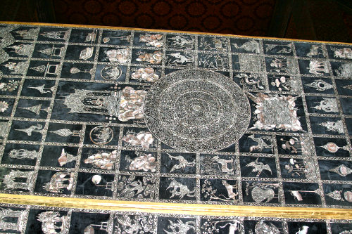 ![]() Detail of the soles of the feet of the reclining Buddha showing the 108 auspicious characteristics |