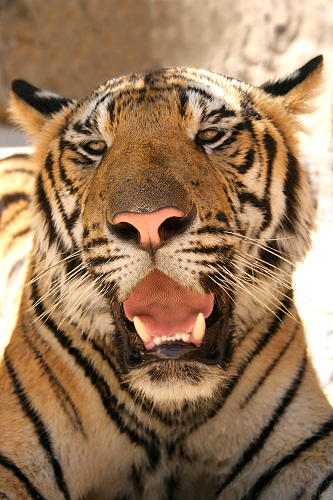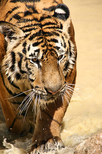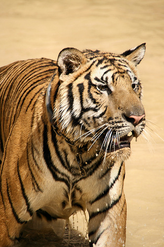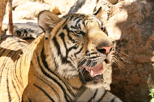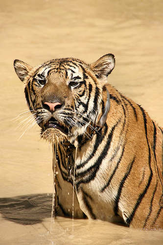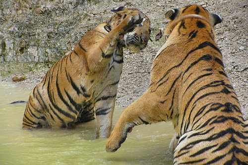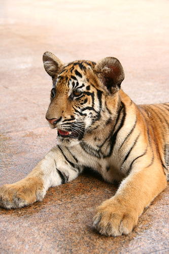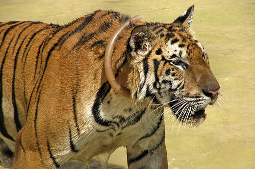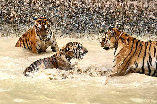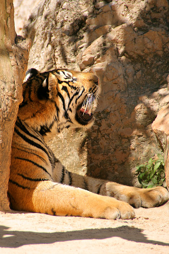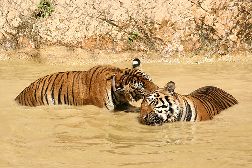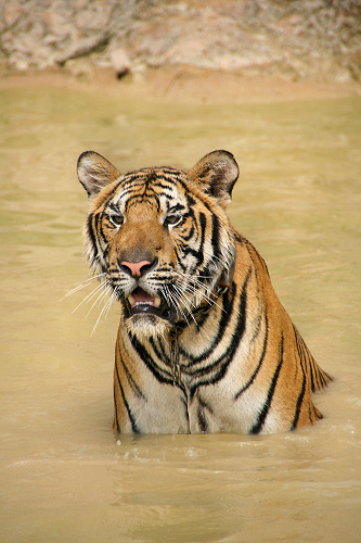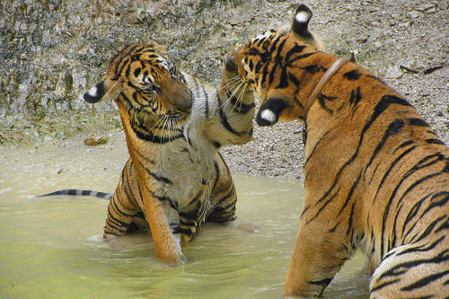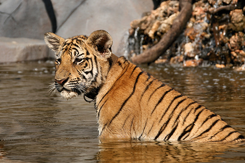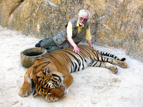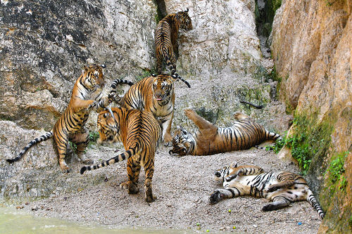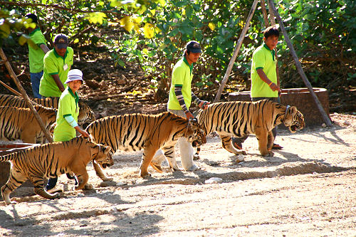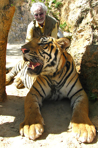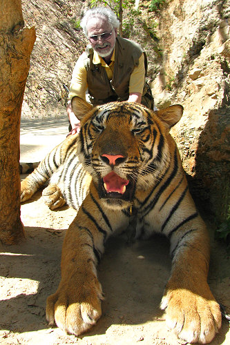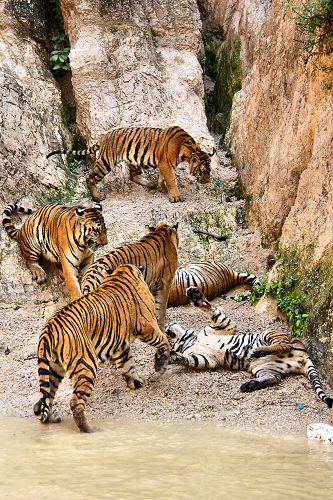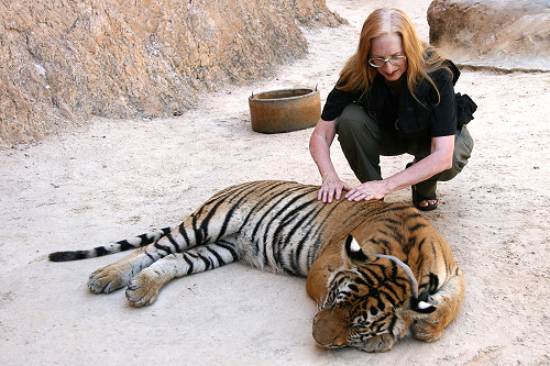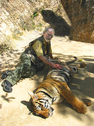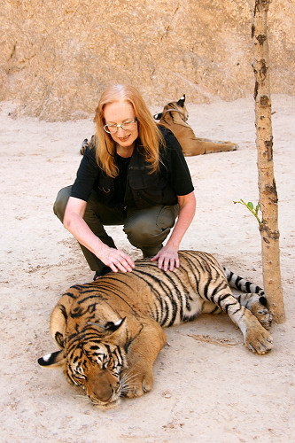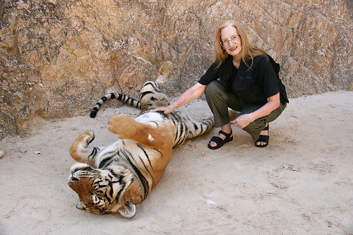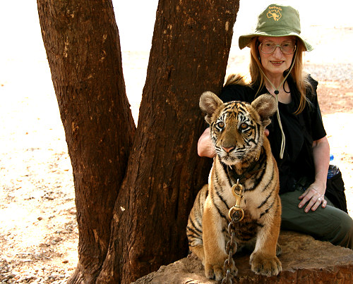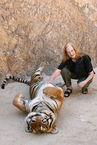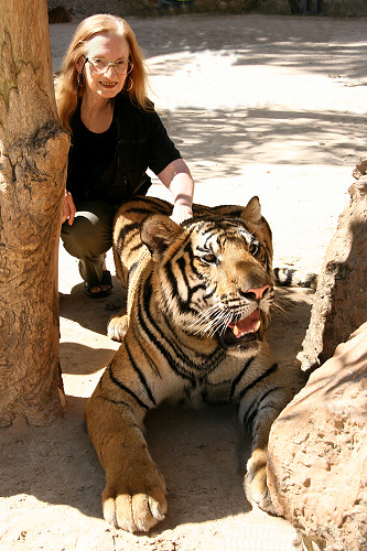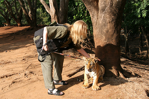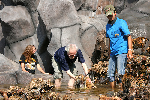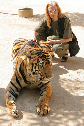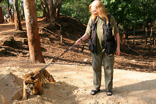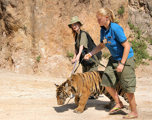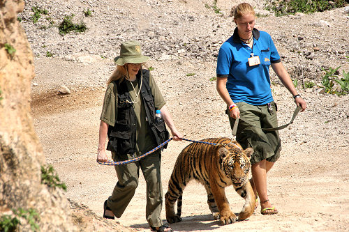 ![]() Carole-Anne helps to take the bigger tigers to the canyon pool area for photos, and tiger exercises |