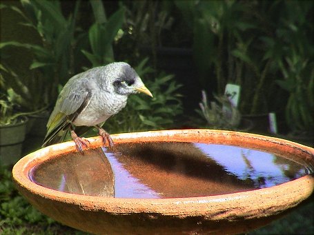 ![]() New Holland Honey Eater one of many who rapidly deplete our nectar feeder (see below) |
