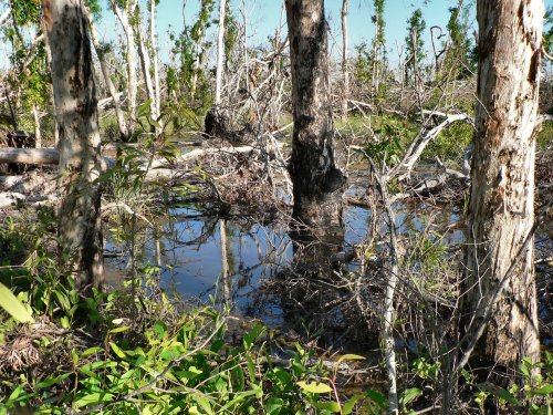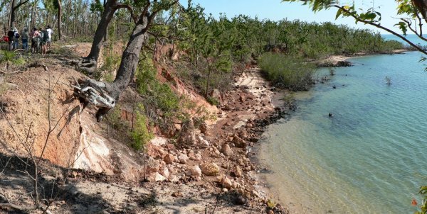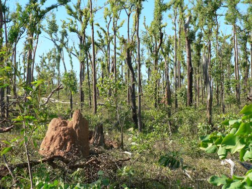There is little left to show of the settlement - the main interest here was the devastation caused by cyclone Ingrid 4 weeks previously and the regrowth already occurring on the sparse tree branches