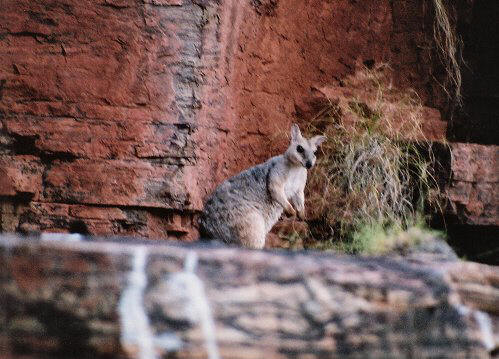 Above and below: Short-eared Rock Wallabies on the cliffs at the side of the river |
