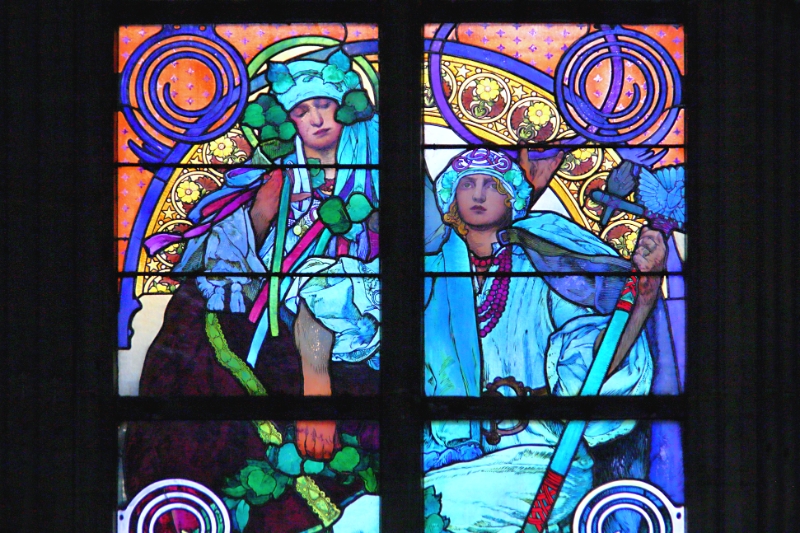 64 Detail of stained glass window, St Vitus Cathedral, Prague Castle, Czech Republic |
