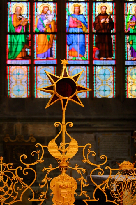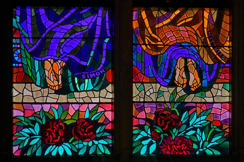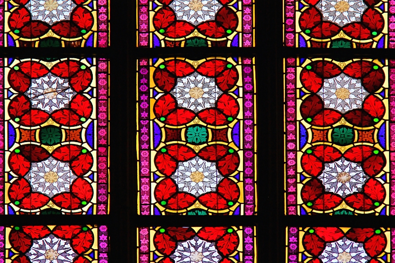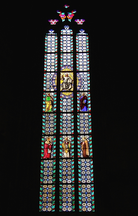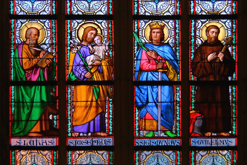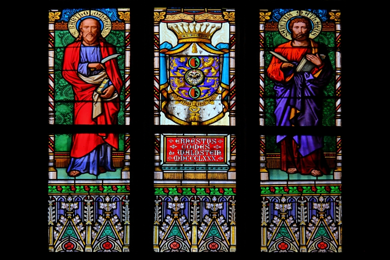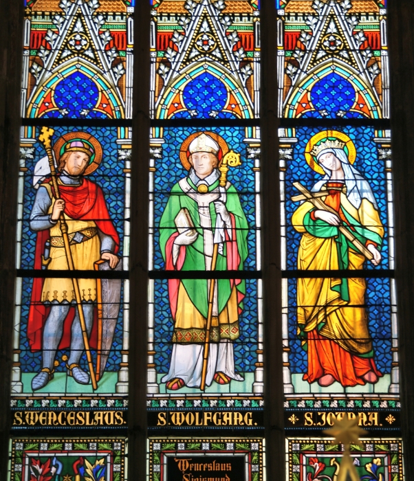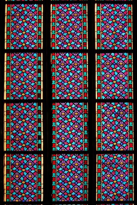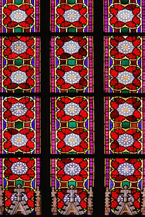 63 Close-up of stained glass window, St Vitus Cathedral, Prague Castle, Czech Republic |