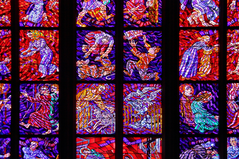 33 Stained glass window in St Vitus Cathedral, Prague Castle, Czech Republic |