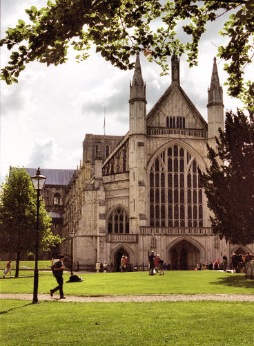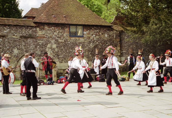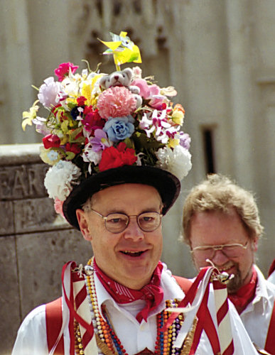![]() Morris Dancers entertaining the public in front of the Winchester Cathedral |