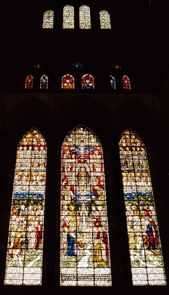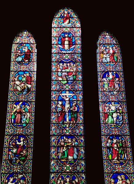 | These are the oldest stained glass windows in Britain (12th century) - in St Margaret's Chapel in Edinburgh Castle | |