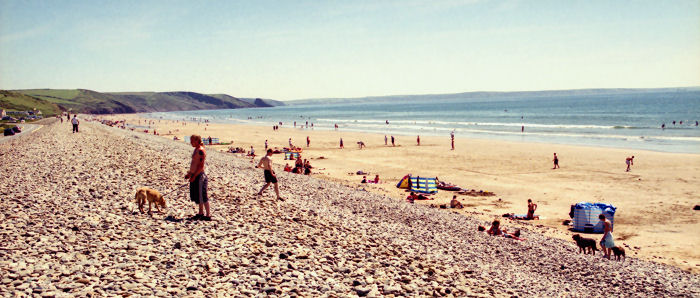 ![]() The extensive sandy beach at Newgale has this pile of washed up stones along its full length Solva |
