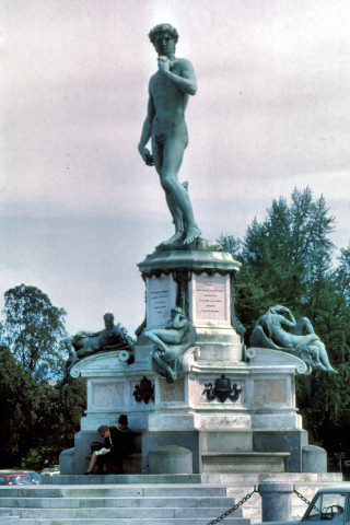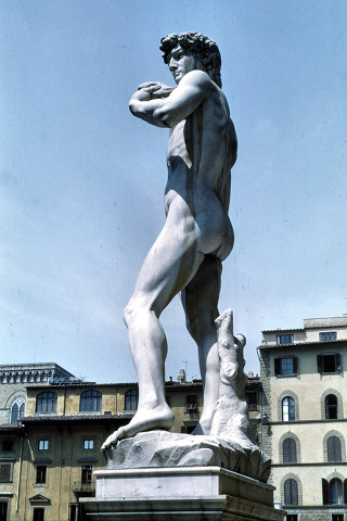 Above left: copy of the famous David statue in Piazza Della Signoria Above right: more copies of the sculptures of Michelangelo in Piazza Michelangelo |