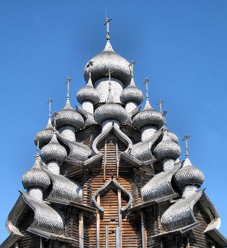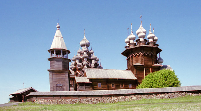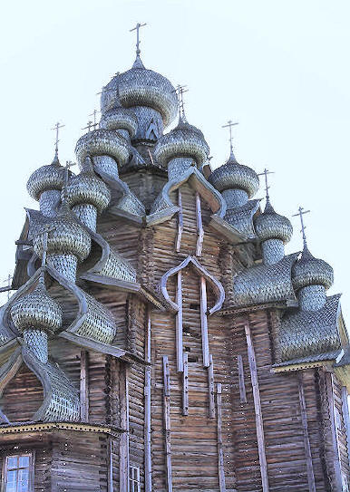 ![]() The spectacular Kizhi Church of Transfiguration (1722), Bell Tower, and the Intercession Church (1764) - all wood |