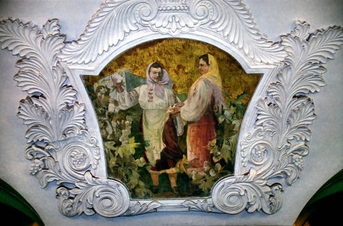 ![]() Above and below, examples of the prolific decorations underground in the Moscow Metro |