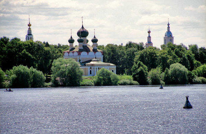 ![]() Church of Prince Dimitri on His Blood - seen from the River Volga |