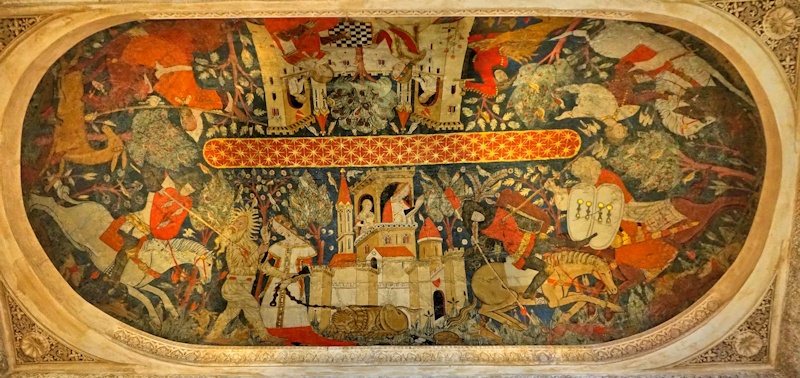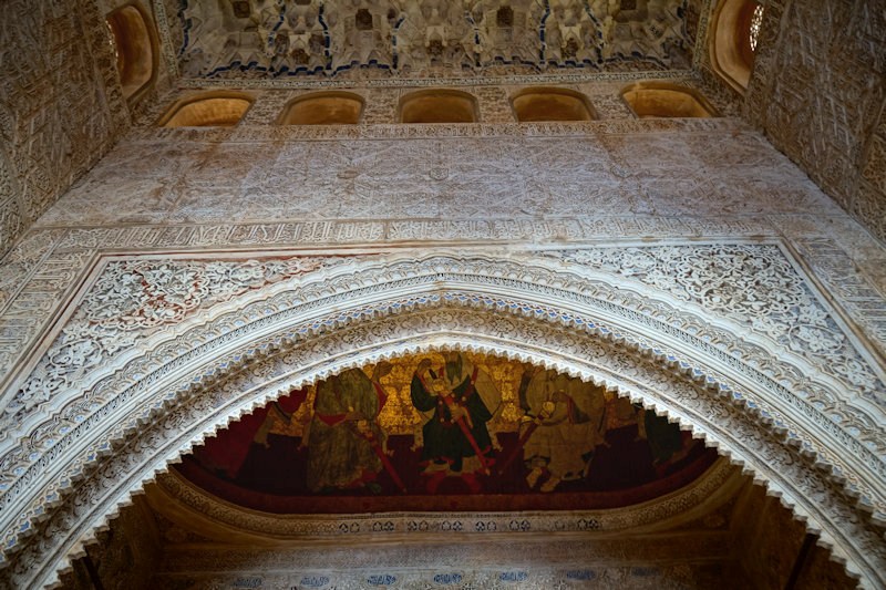 ![]() Frescoes commissioned by Muhammed V of Granada, using leather, ceramics, glass and plasterwork, during the final reign of the Nasrid Muslims in Spain. Restored in 2019. |