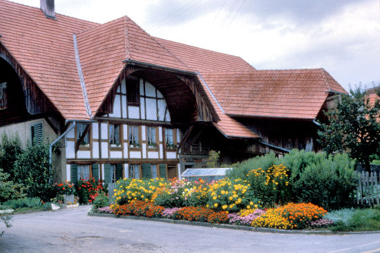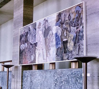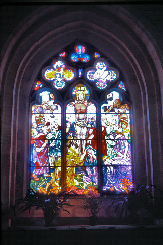 ![]() Modern glass window in a church at Ferreyres (north of Lake Geneva) |