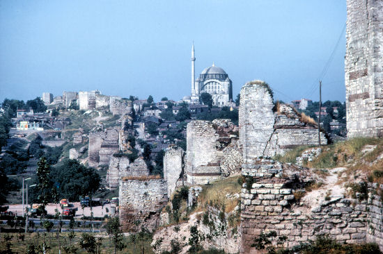 ![]() Ruins of the substantial city wall (near the Edirne Gate) built around Istanbul/Byzantium/Constantinople in the 5th century by Emperor Theodosius II |