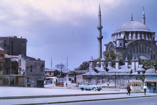 ![]() Looking back across the Bosporus to the Suleymaniye Mosque (largest in Istanbul) built 1550 to 1557 by the Sultan Suleyman |