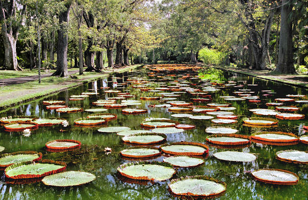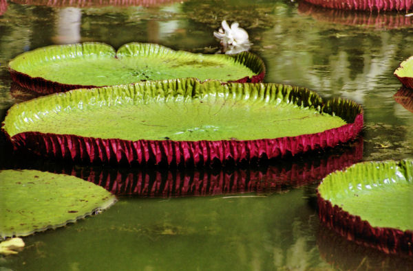 ![]() Giant Waterlily (Victoria Regia) from the Amazon in the Botanical gardens at Pamplemousses |