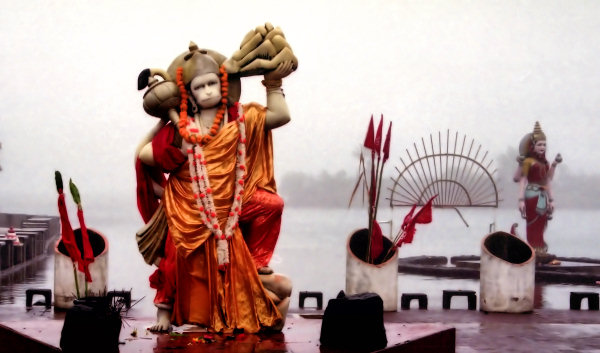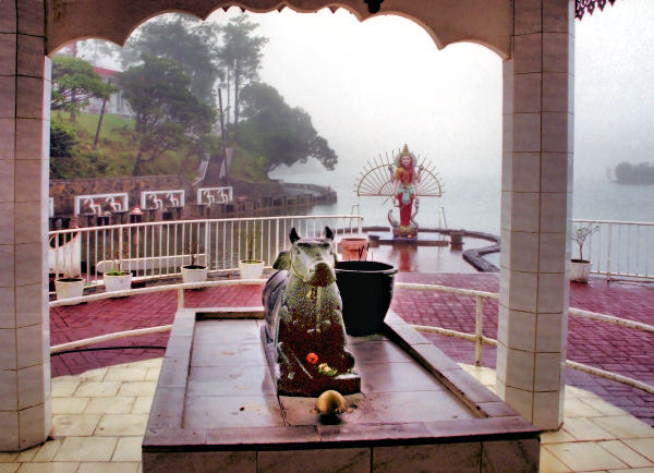 Hindu temple statues with sacred Grand Bassin