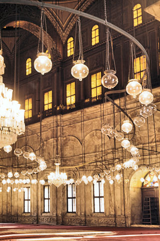 | The amazing display of lamps in the Alabaster Mosque |