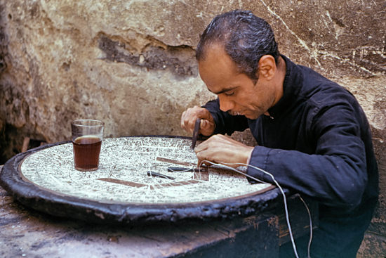 ![]() Repousse worker - inlaying silver into copper Inlay is a decorative technique of inserting pieces of contrasting, often coloured materials like metals and wood, into depressions in a base object to form patterns or pictures. It requires an immense amount of skill and patience. Inlay is commonly used in the production of decorative furniture, where pieces of coloured wood or metal are inserted into the surface of the carcass. Luthier Inlays are frequently used as decoration and marking on musical instruments, particularly the smaller strings. |