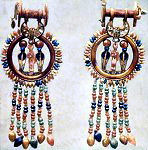 | Memorial stone (stele) of Akhenaton | Winged scarab pectoral | Earrings from the tomb of Tutankhamen | Ornamented