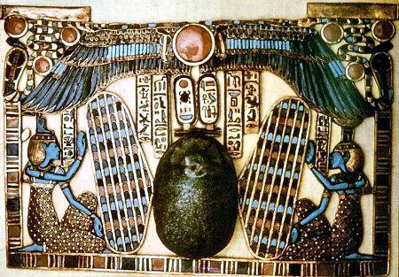 Winged scarab pectoral of Tutankhamen, with Nephthys and Isis