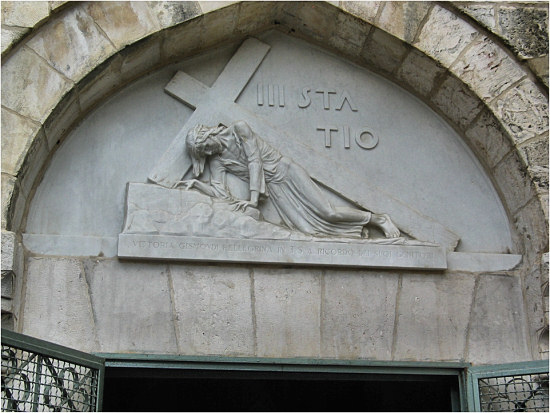 ![]() Relief sculpture indicating the Third Station of the Cross |