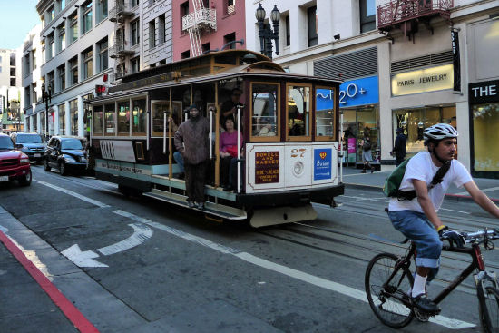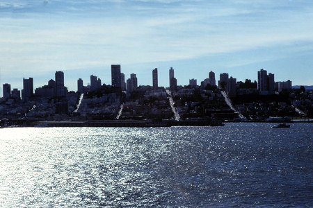 ![]() San Francisco skyline in the shade, taken from a boat on the way to Alcatraz The steep streets stand out. |