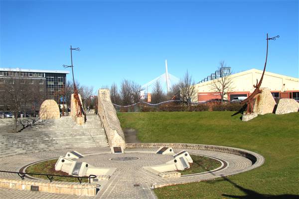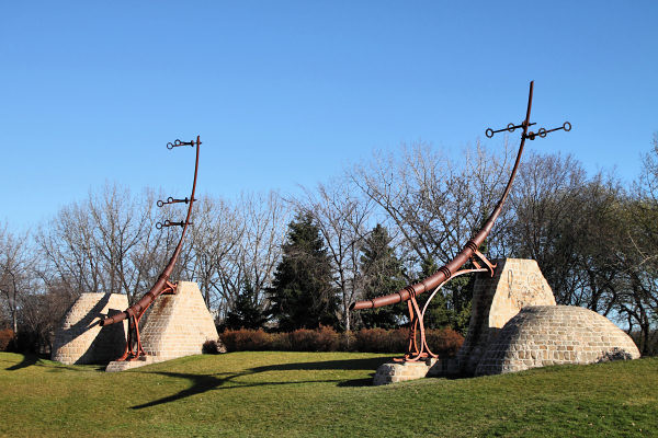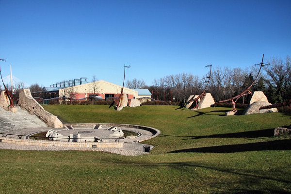 ![]() Oodena Celebration Circle Sculpture The sculptures are embedded into cobblestone formations which are inscribed with pan-cultural legends in conjunction with the constellations. The sculptures armatures act as guideposts for celestial positioning, some which display objects relating to the elements, the sun and the stars. |