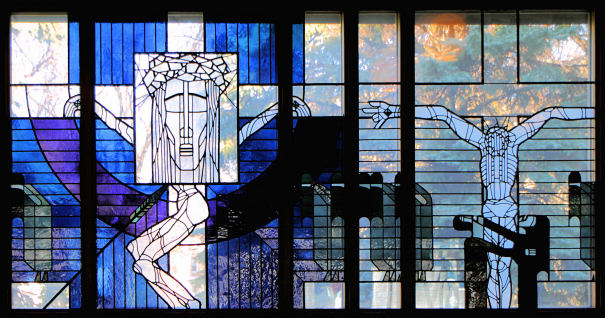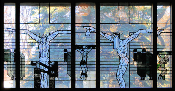 The Stations of the Cross are represented in Stained Glass |