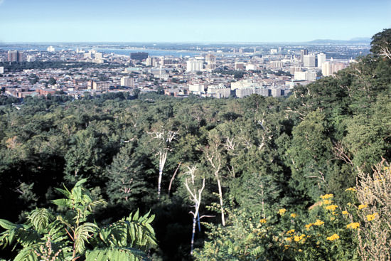 ![]() Montreal from Mount Royal (Mont Real) The city is on the Island of Montreal located within the confluence of the St. Lawrence and Ottawa Rivers |