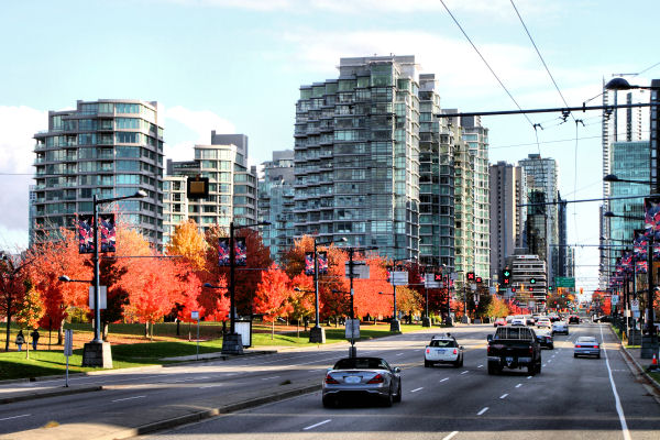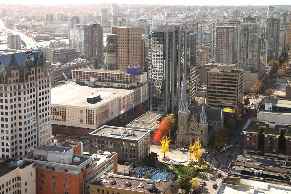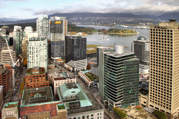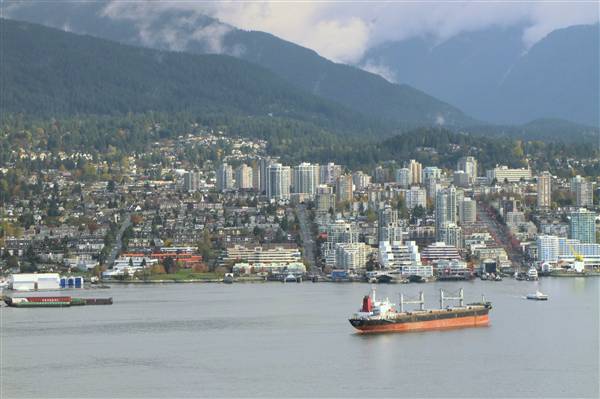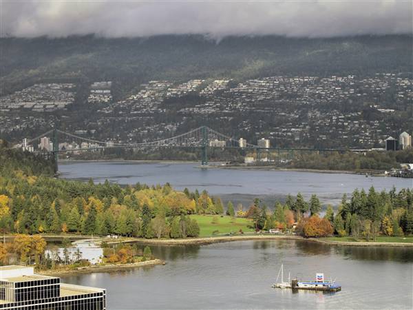 ![]() The famous Lions gate suspension bridge can be seen leading to the Vancouver North Shore |