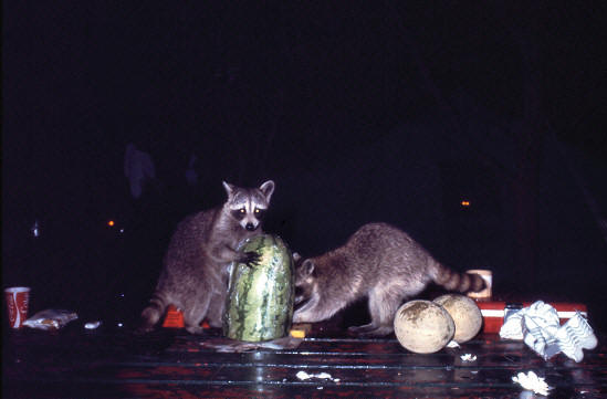 ![]() Racoons wake us up when they attack our neighbour's laid out out breakfast in the campsite |