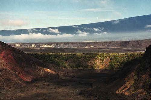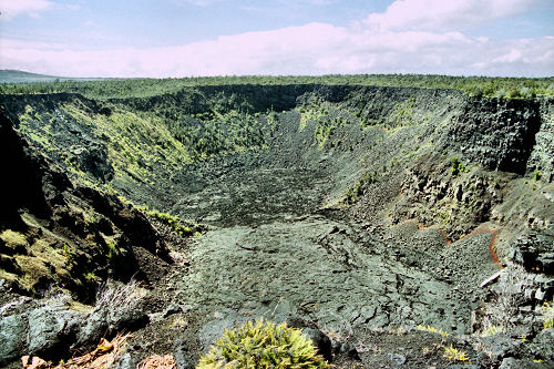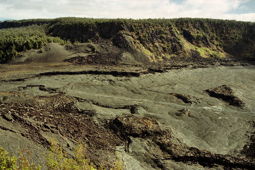 ![]() At the upper right we see the crater Halema'uma'u which is within the much larger crater or caldera Kilauea |