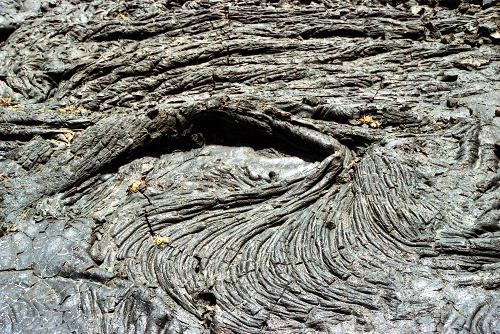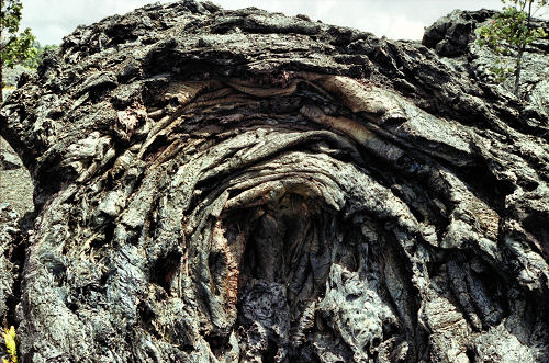 ![]() Lava flows round the base of a tree, the lava cools as the tree burns out. |